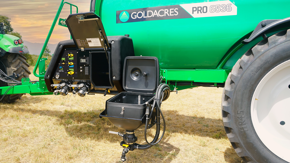 Arguably the biggest advancement to the new model is the adaption of Goldacres own in-house developed G-Hub sprayer control system. Comprising of a full colour 5” screen and keypad at the fill station and an optional 12” colour touch screen inside the tractor cabin, the system allows all functions to be quickly operated with a minimum of fuss. One of the key features of the G-Hub is the ability to enter a tank fill volume and the system does the rest, shutting off the pump and fill valves once the fill volume is met.