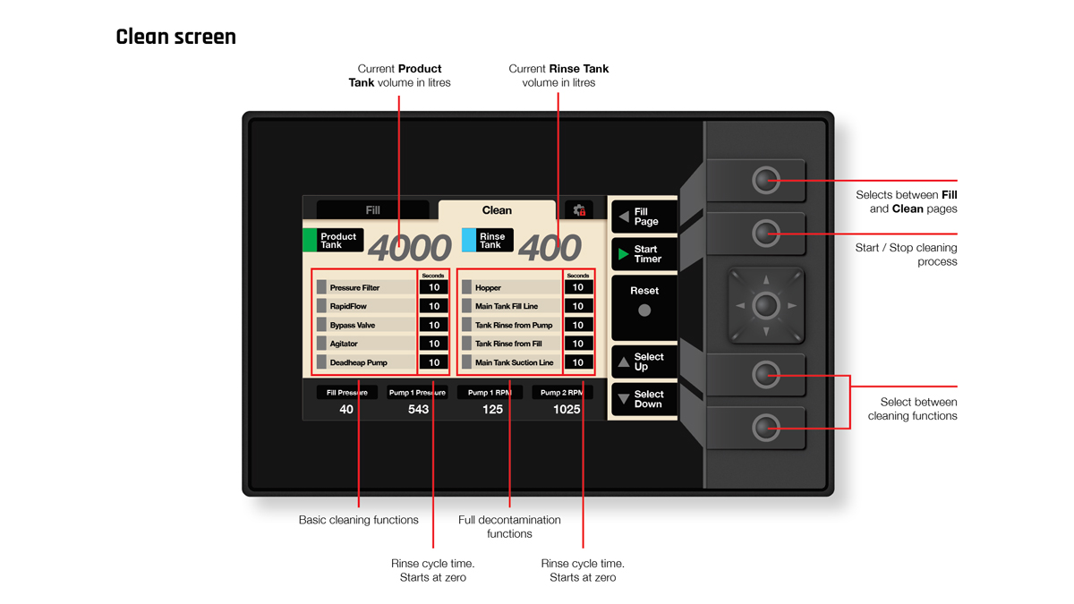 Featuring a full colour 5” screen and button panel to control all fill and clean functions with the push of a button.
