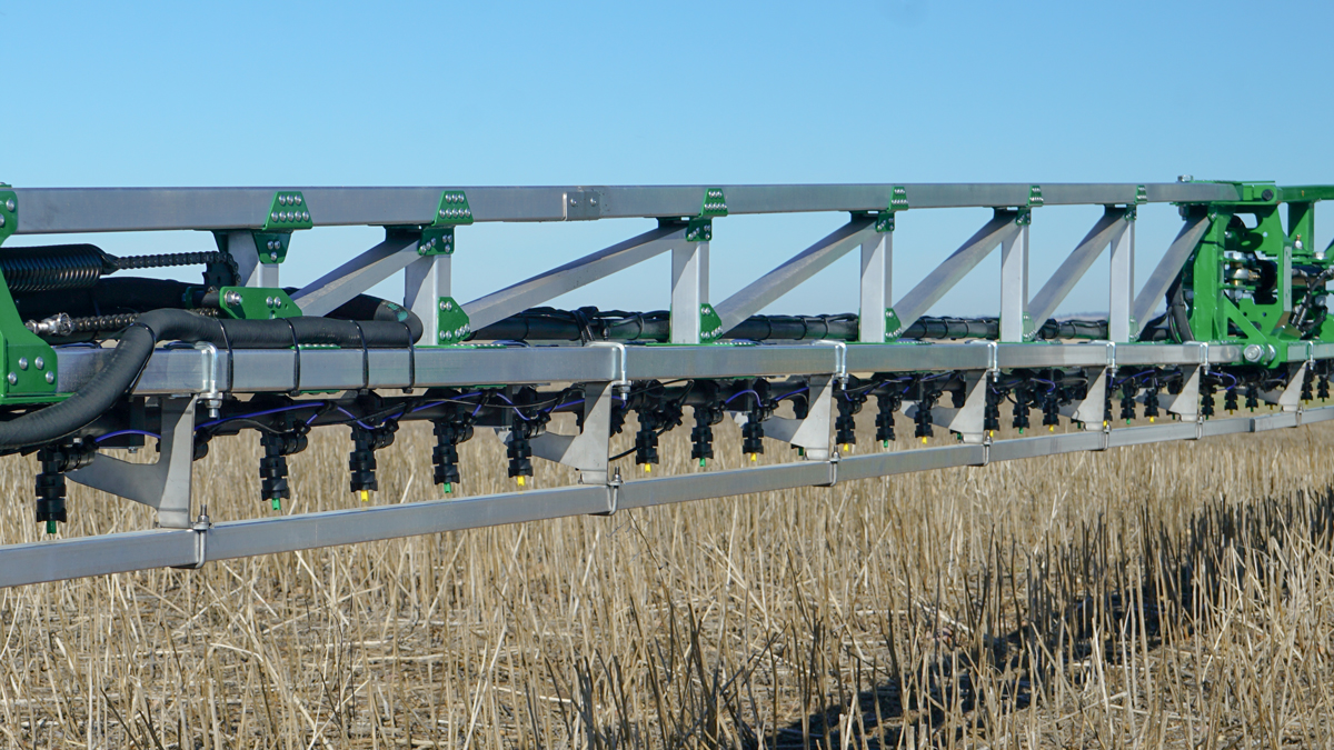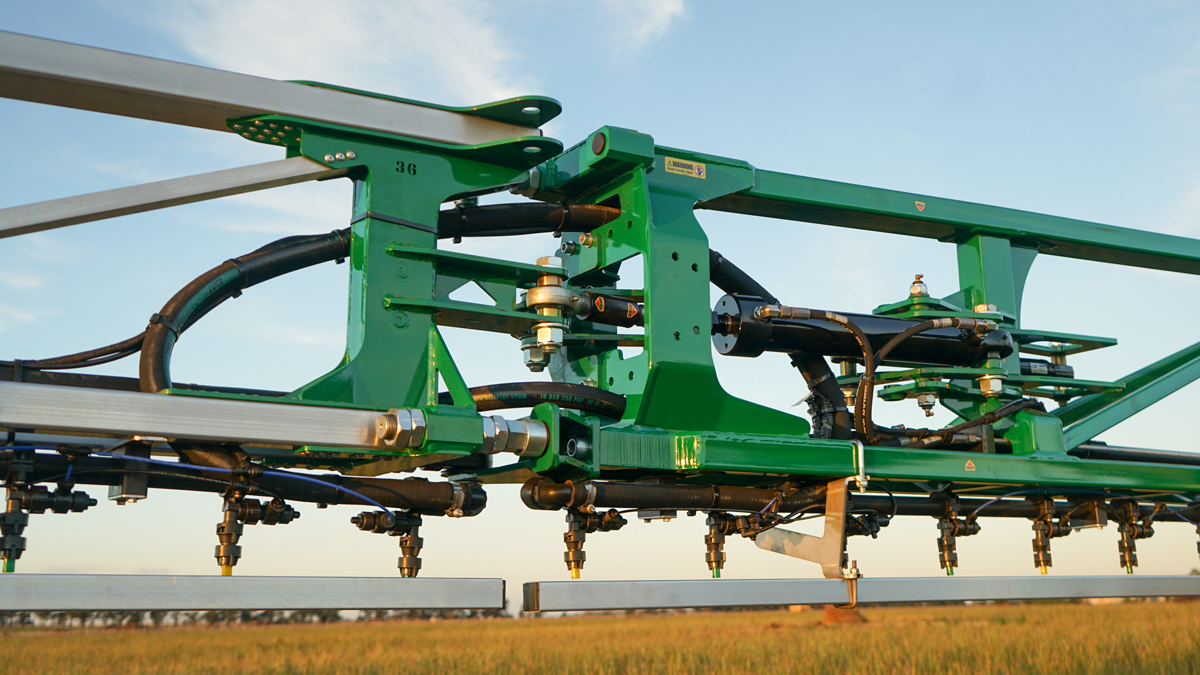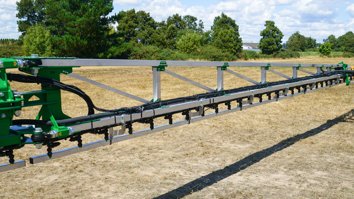 Boom plumbing has been increased from ¾” to 1” for both higher application rates and to also reduce pressure drop along the length of the boom. The boom lines and nozzle bodies are also mounted below the main structure of the boom and protected by a replaceable protection bar. By placing the nozzles under the main structure any spacing or configuration can be achieved and all nozzles are in perfect alignment.