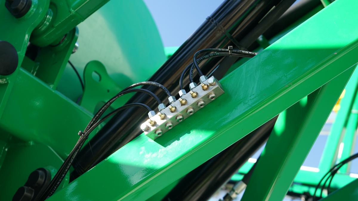 Small airlines at each nozzle switch the flow on and off in a fraction of a second, and more evenly across the boom width. Boom line plumbing is also greatly reduced, which quickens line priming and flushing as well as simplifies plumbing.